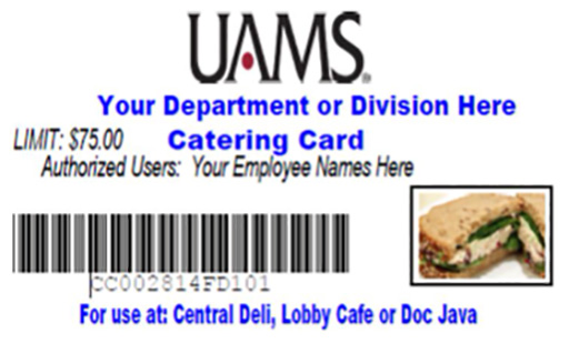 Catering cards are a handy way for your department to buy food and beverages for small groups. They are designed to provide meals for 7 or fewer people. Charges are billed to the department every month. What are catering cards?